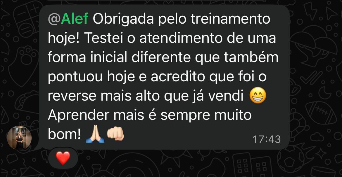O conteúdo é direto ao ponto e pode ser assistido em poucas horas. A ideia é que você consiga aprender e começar a aplicar rapidamente nas suas conversas com leads.